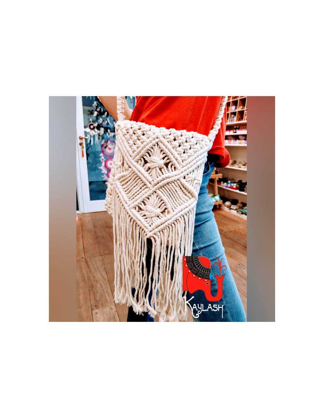 Sostenibilidad Real: Al estar fabricado con materiales naturales y procesos manuales, el Morral de Macramé es una elección rítmicamente responsable con el medio ambiente.