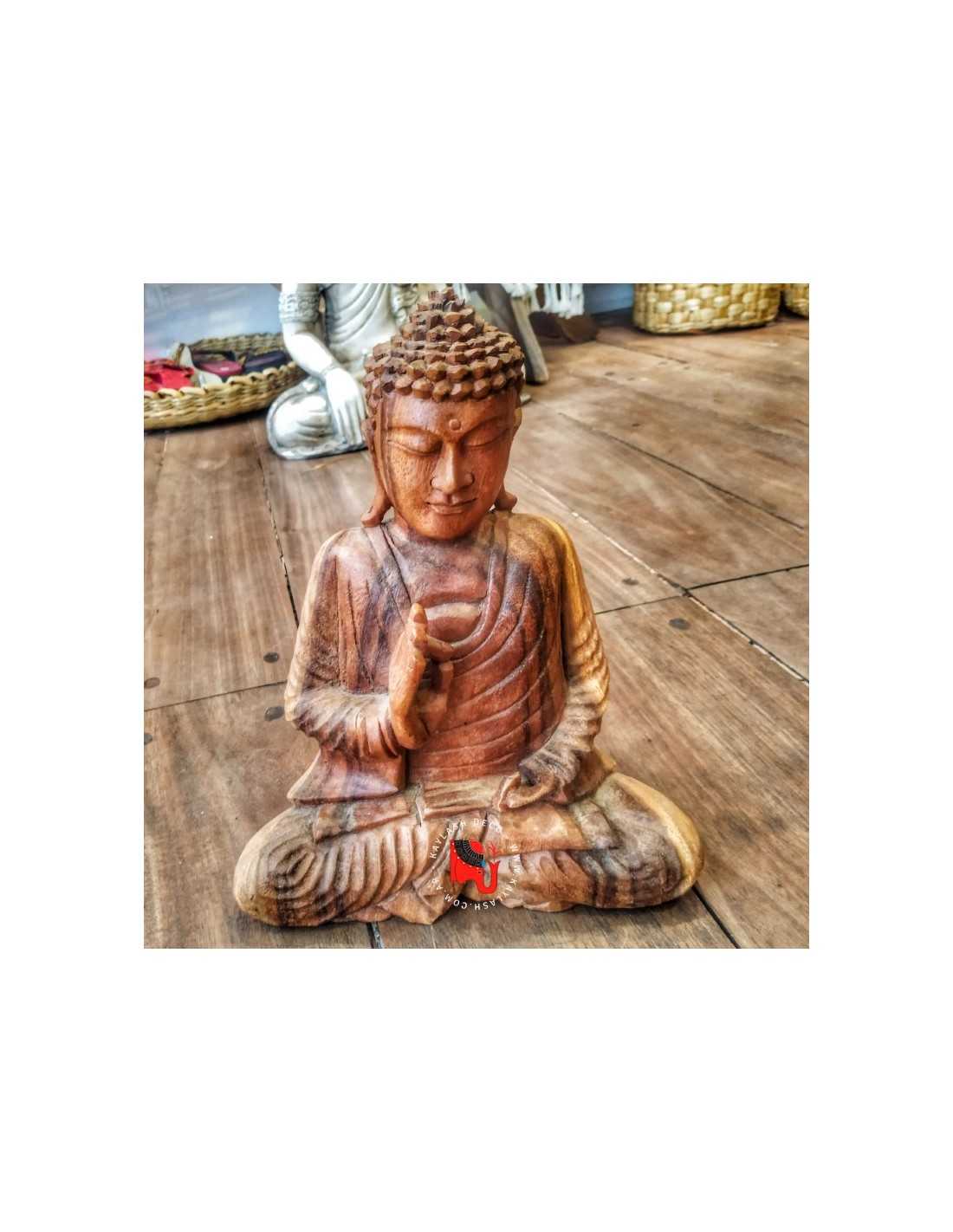 Piezas Únicas: Al ser madera natural tallada a mano, cada Buda posee vetas irrepetibles, garantizando que tu pieza sea exclusiva.