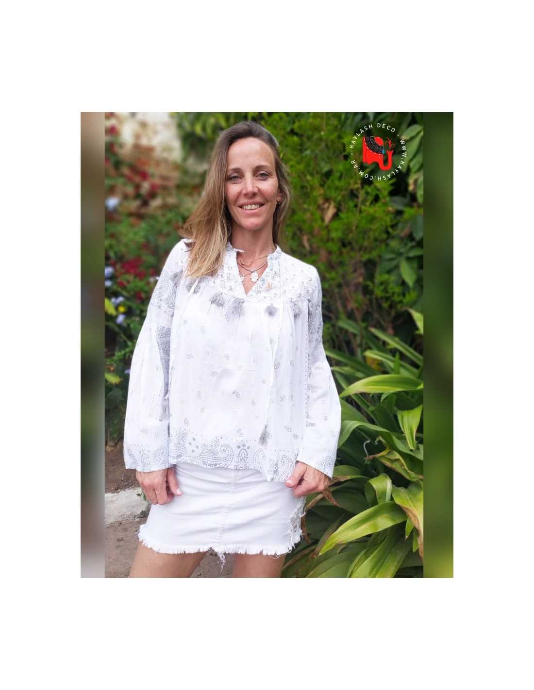 La Camisa Bordada Vars es la expresión máxima de la elegancia artesanal y el estilo bohemio contemporáneo, diseñada para mujeres que buscan destacar con sofisticación y frescura en este 2026. En Kaylash, seleccionamos cada prenda entendiendo que la indumentaria es una extensión de nuestra esencia; por eso, la Camisa Bordada Vars ha sido confeccionada con detalles de bordado exclusivos que aportan textura y una identidad única a tu look diario. Ya sea para un evento especial al aire libre, una tarde de paseo o una reunión informal, esta camisa se adapta rítmicamente a tu silueta, brindándote una comodidad absoluta gracias a su caída fluida y la nobleza de sus materiales seleccionados.