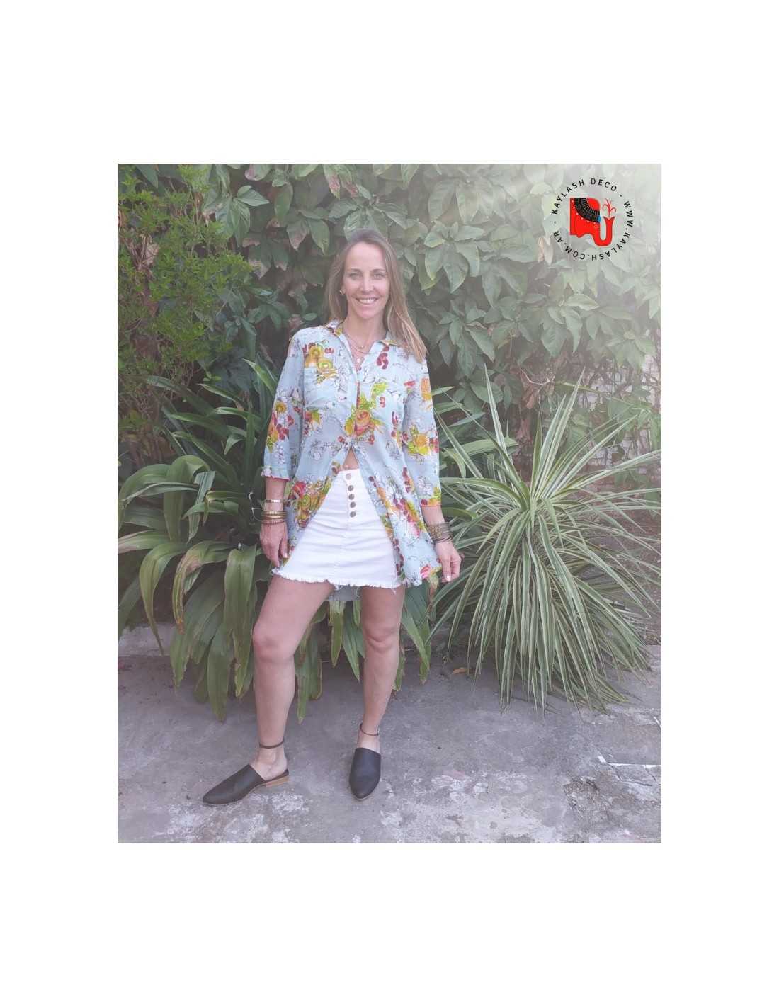 La Camisola Floreada Vars se presenta como la pieza fundamental para renovar tu guardarropa con un toque de frescura, elegancia y ese espíritu bohemio que define la moda consciente en este 2026. En Kaylash, seleccionamos esta prenda entendiendo que la mujer moderna busca versatilidad sin sacrificar el estilo; por eso, la Camisola Floreada Vars ha sido diseñada con un corte relajado que favorece el movimiento y una caída fluida que se adapta rítmicamente a tu silueta. Ya sea para un paseo al atardecer, una reunión informal o un día de relax total, esta camisola con estampado floral exclusivo te brinda la distinción necesaria para destacar, permitiendo que tu personalidad brille a través de sus delicados detalles y su textura suave al tacto.