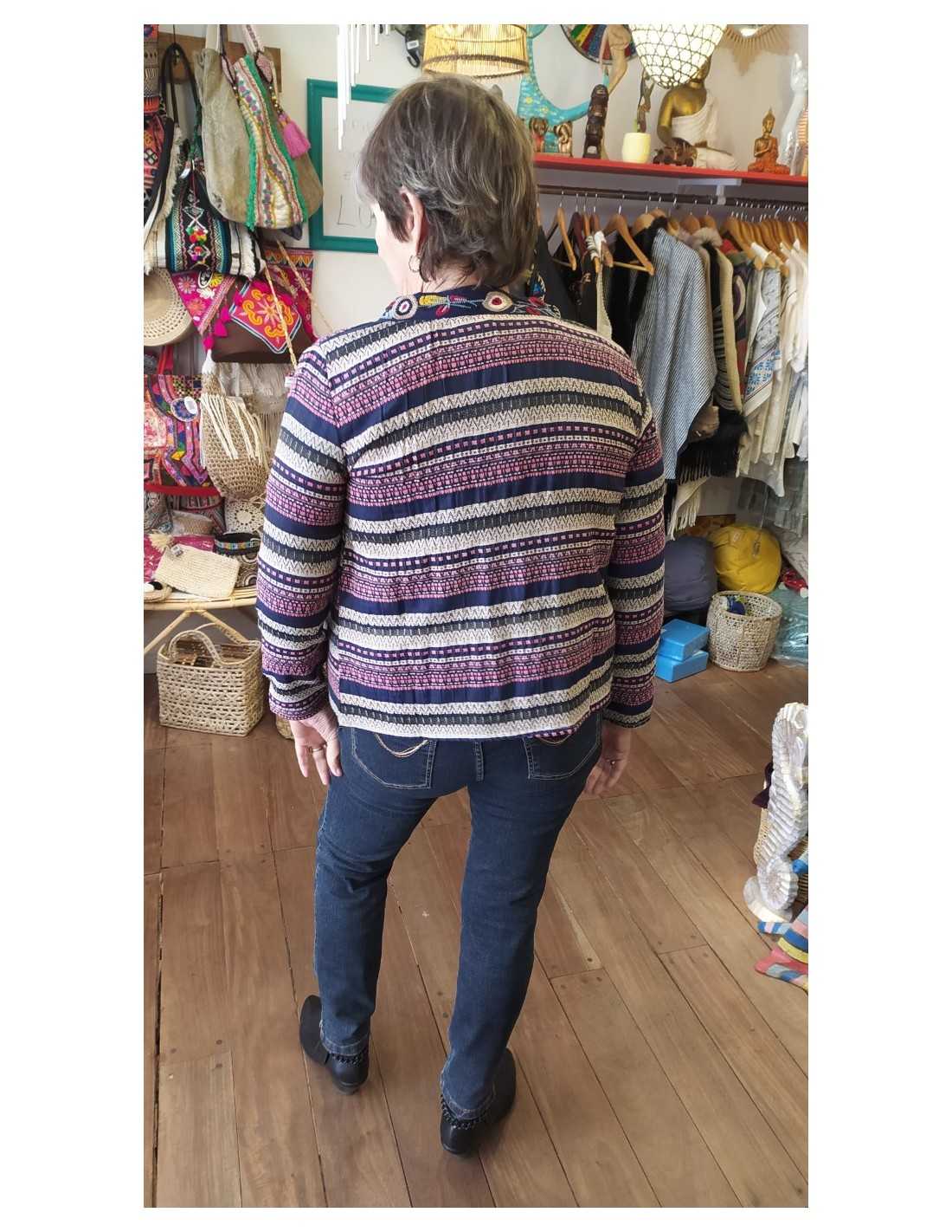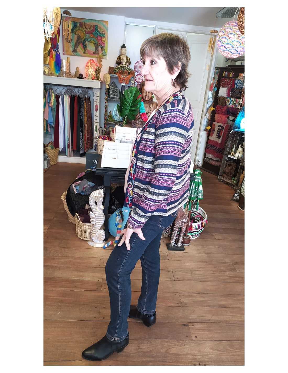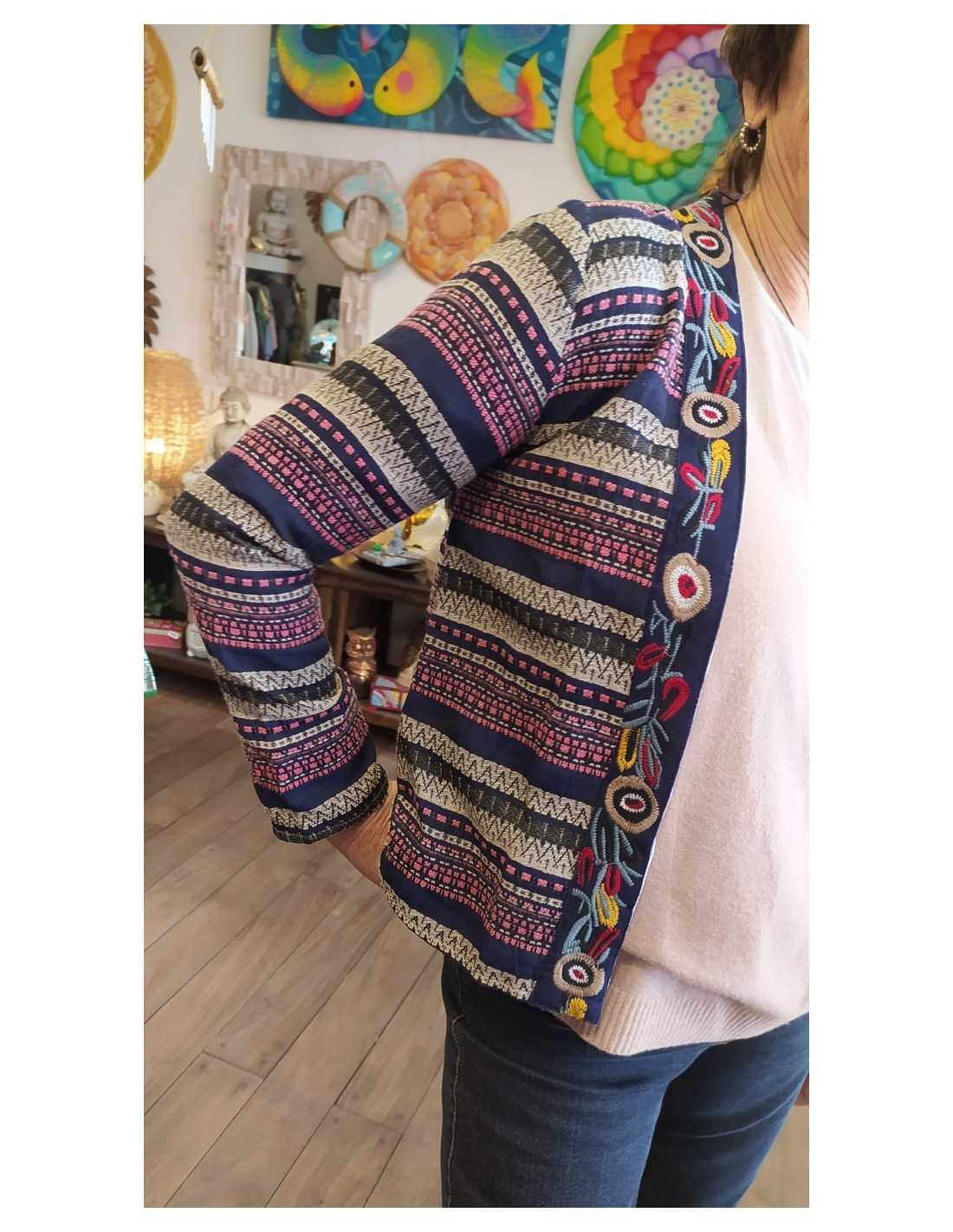 Chaqueta exclusiva de inspiración india, con estampados vibrantes y detalles artesanales que celebran la llegada de la primavera. Confeccionada en tela ligera y cómoda, es perfecta para darle vida y personalidad a cualquier look. Su diseño único y bohemio la convierte en una prenda que no pasa desapercibida.