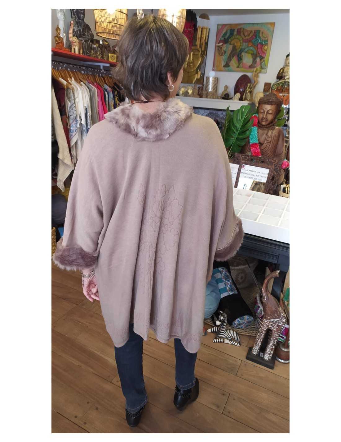 Lo que realmente hace destacar a la Ruana con Piel sobre otros abrigos convencionales es la armonía de sus texturas. La caída fluida del textil principal proporciona una sensación de libertad inigualable, evitando la rigidez de los abrigos tradicionales. El aplique de piel no es solo un detalle estético; es una declaración de intenciones que enmarca rítmicamente el rostro y aporta una capa extra de calidez en las zonas más sensibles. En este 2026, la tendencia es la "elegancia relajada", y esta ruana cumple con esa premisa a la perfección, permitiéndote lucir impecable sin sacrificar la comodidad que tu cuerpo necesita en los días más frescos del año.