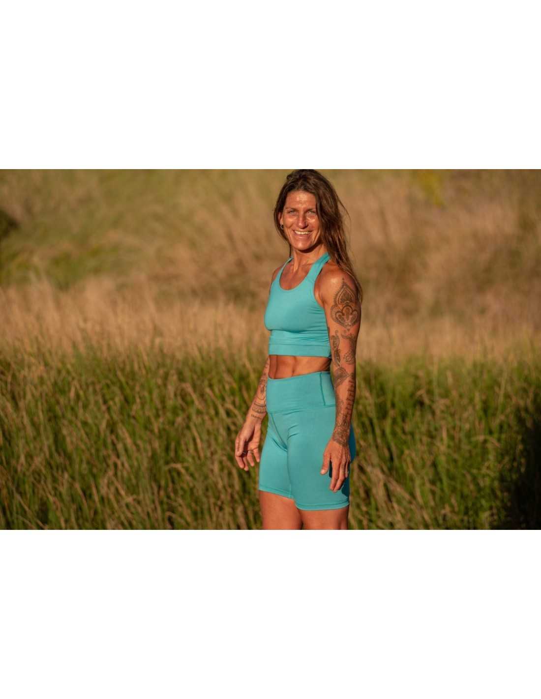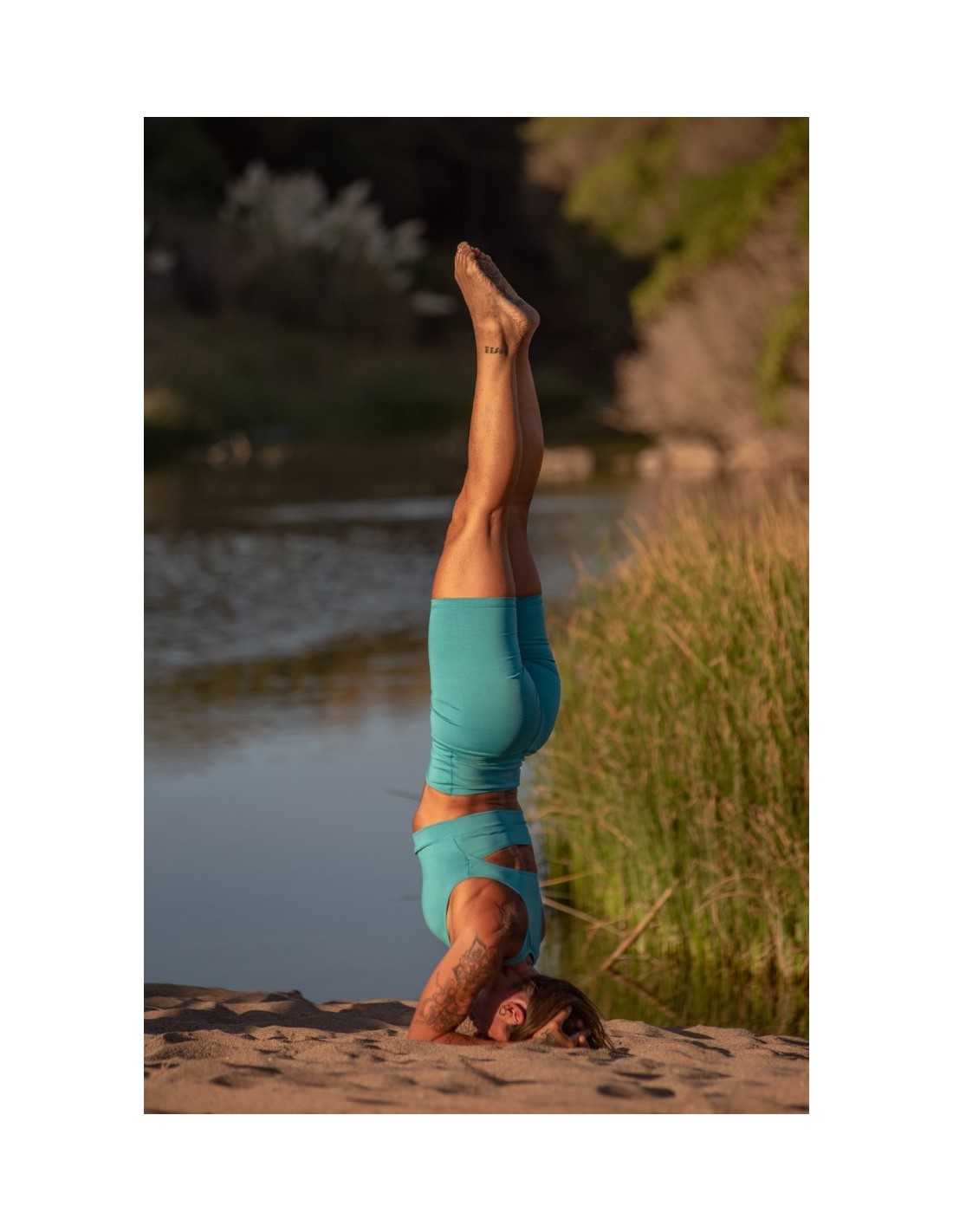 El tono de la Light Lulea Acqua no es una elección azarosa. El color acqua, situado entre el azul y el verde, está íntimamente relacionado con la serenidad del agua y la claridad del cielo. En la psicología del color aplicada al bienestar, este tono ayuda a calmar el sistema nervioso y a reducir los niveles de estrés. Vestir la Light Lulea Acqua durante tu meditación o práctica física te ayuda a entrar en un estado de "fluidez", conectando con la frescura y la renovación. Es un color que ilumina el rostro y transmite una energía de paz, tanto para vos como para quienes comparten el espacio de práctica con vos.