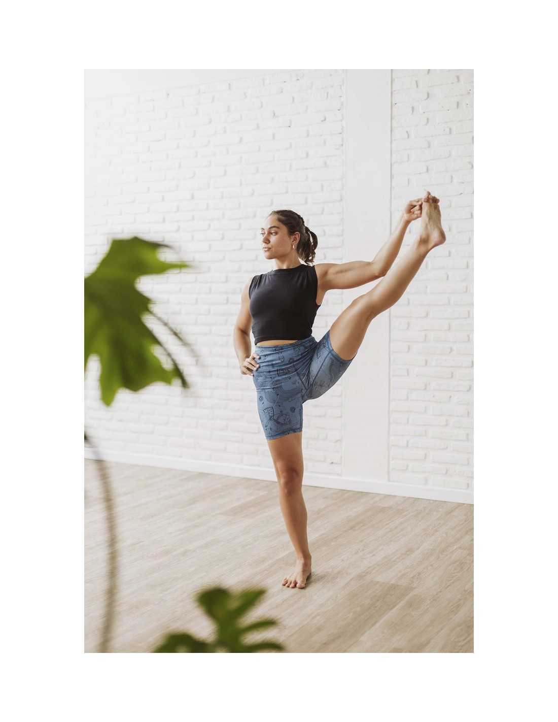Short con cintura súper alta y costuras planas por dentro y por fuera, para que ni las sientas al practicar. Está diseñado para prácticas intensas donde el cuerpo genera mucho calor. El largo de las piernas es un intermedio entre el Short Ashtanga y la Legging 3/8: fresco y cómodo en la práctica, y lo suficientemente largo para ir y venir del Shala.