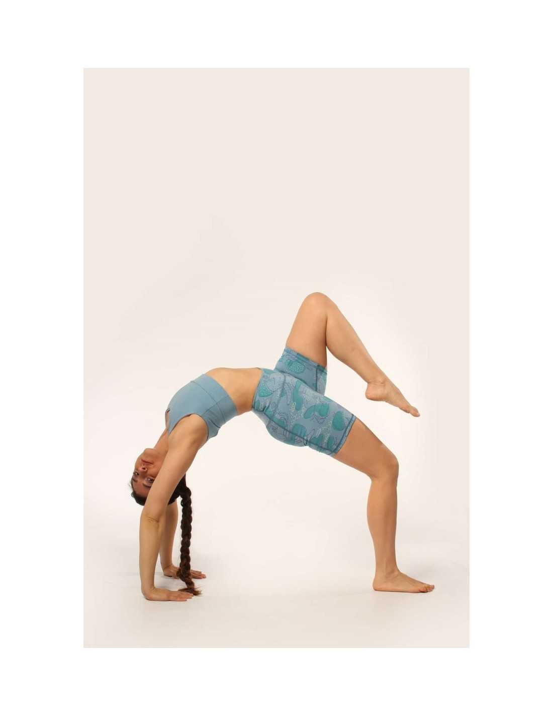 Short 2/8 Ánima, cintura súper alta y costuras planas por dentro y por fuera, para que ni las sientas al practicar. Está diseñado para practicas fuertes como Asthanga, donde el cuerpo genera mucho calor. El largo de las piernas es un intermedio entre el Short Ashtanga y la Legging 3/8 Mysore: fresco y cómodo en la práctica, y lo suficientemente largo para ir y venir del Shala.
