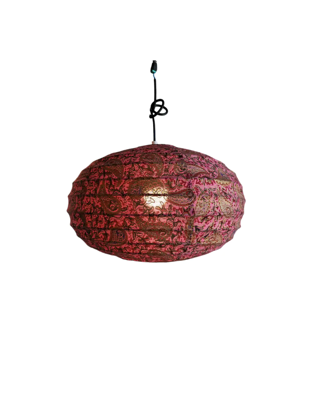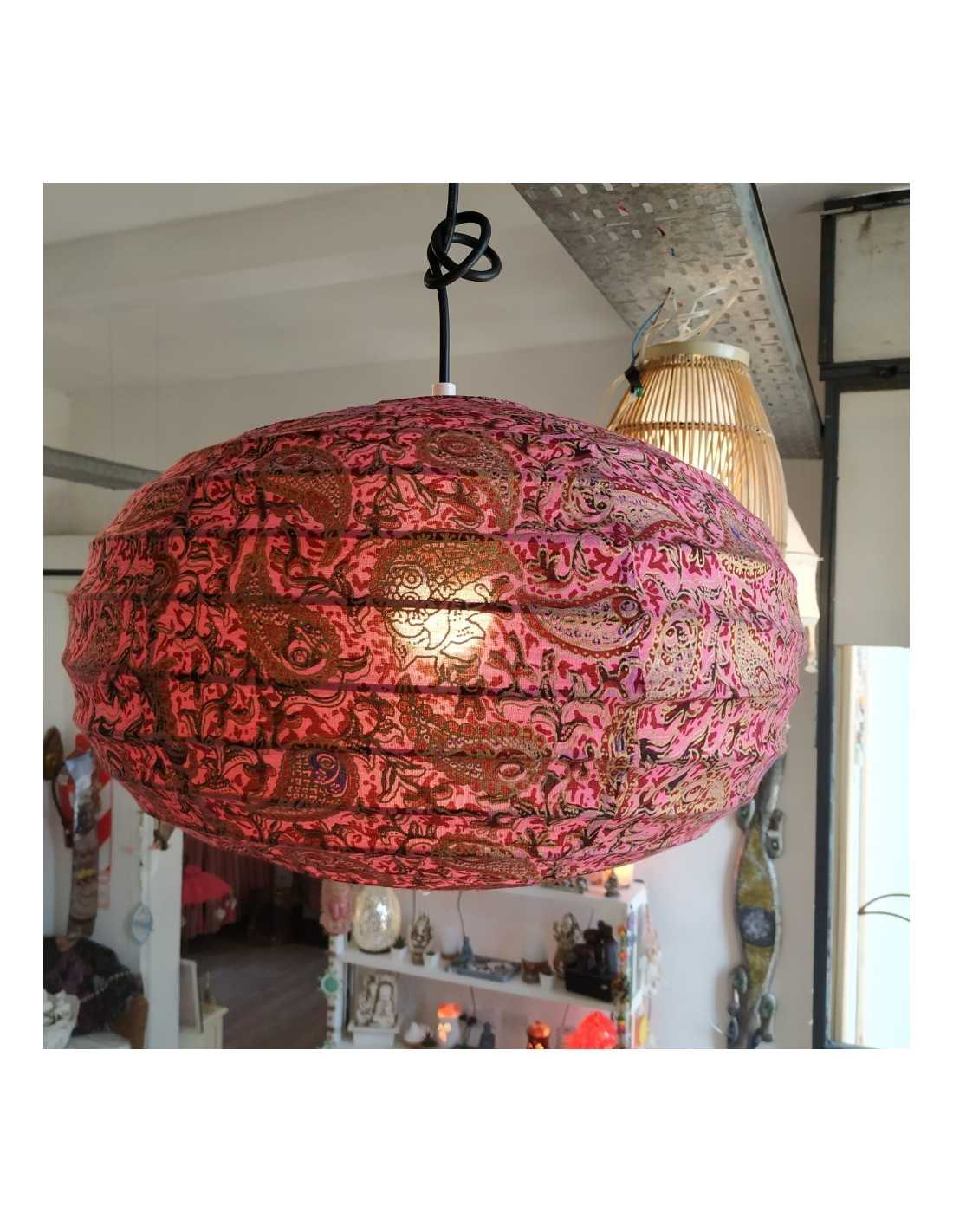 La Lámpara de tela Batik 40cm es mucho más que un simple accesorio de iluminación; es una pieza de arte textil que trae la esencia del diseño bohemio y místico directamente a tu hogar. En Kaylash, entendemos que la luz define el alma de un espacio, y por eso esta Lámpara de tela Batik 40cm ha sido seleccionada por su capacidad de filtrar la claridad de manera suave, creando una atmósfera de serenidad y calidez inigualable. Al elegir esta pieza artesanal de mayor porte, no solo estás iluminando una habitación, sino que estás incorporando una textura orgánica y un patrón visual único que invita a la relajación y al bienestar consciente en espacios más amplios.