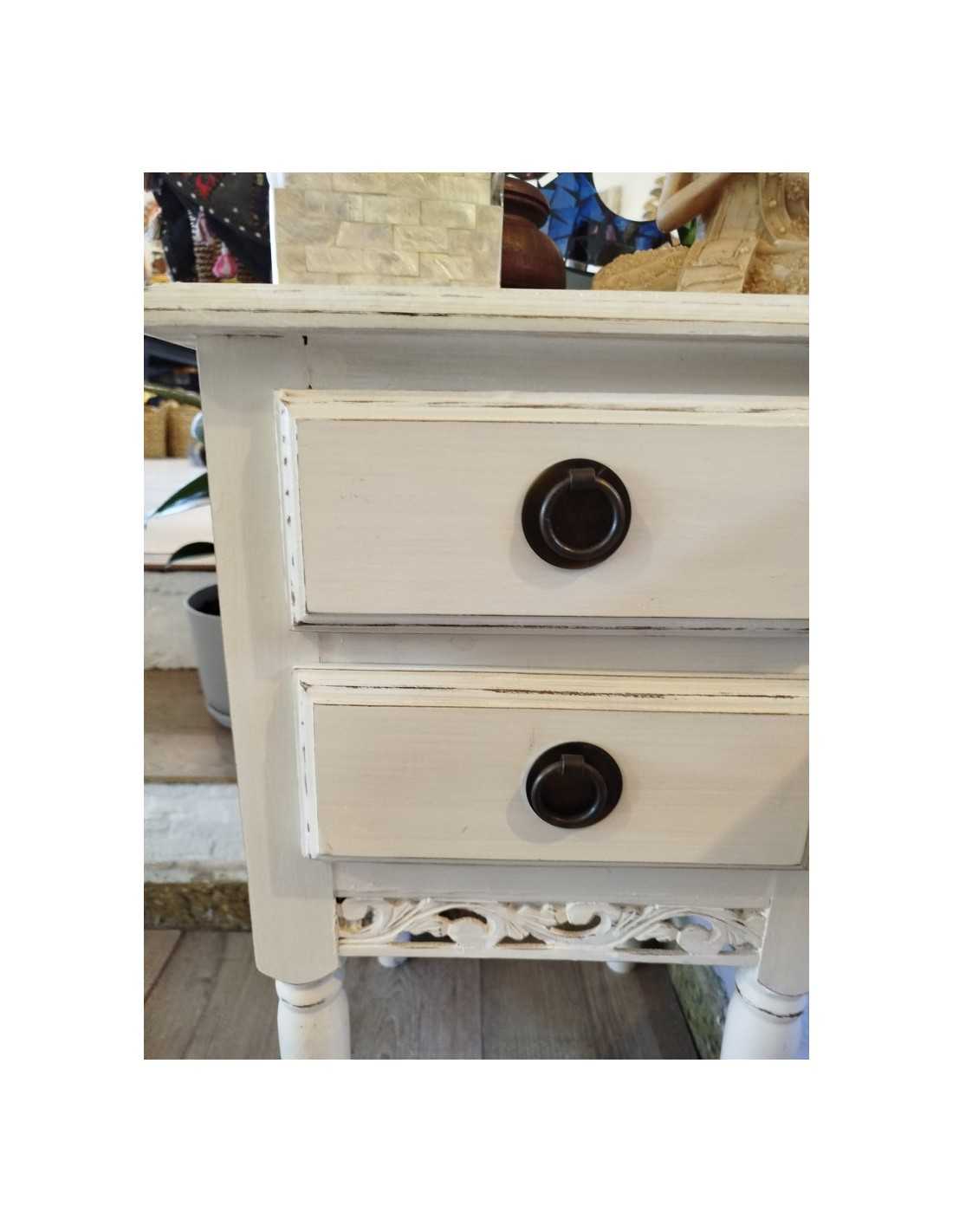 Lo que realmente hace destacar a nuestra Mesa de Luz Tallada es el proceso de creación manual detrás de cada unidad. En Kaylash, seleccionamos maderas de alta densidad que garantizan una larga vida útil y una resistencia superior. El frente de la mesa cuenta con una talla profunda y detallada, realizada por expertos artesanos que heredan técnicas milenarias. Este trabajo artesanal asegura que no existan dos mesas idénticas, brindándote la exclusividad de poseer una pieza única en tu hogar. Los acabados respetan la veta natural de la madera, aportando esa textura orgánica tan valorada en el interiorismo actual.