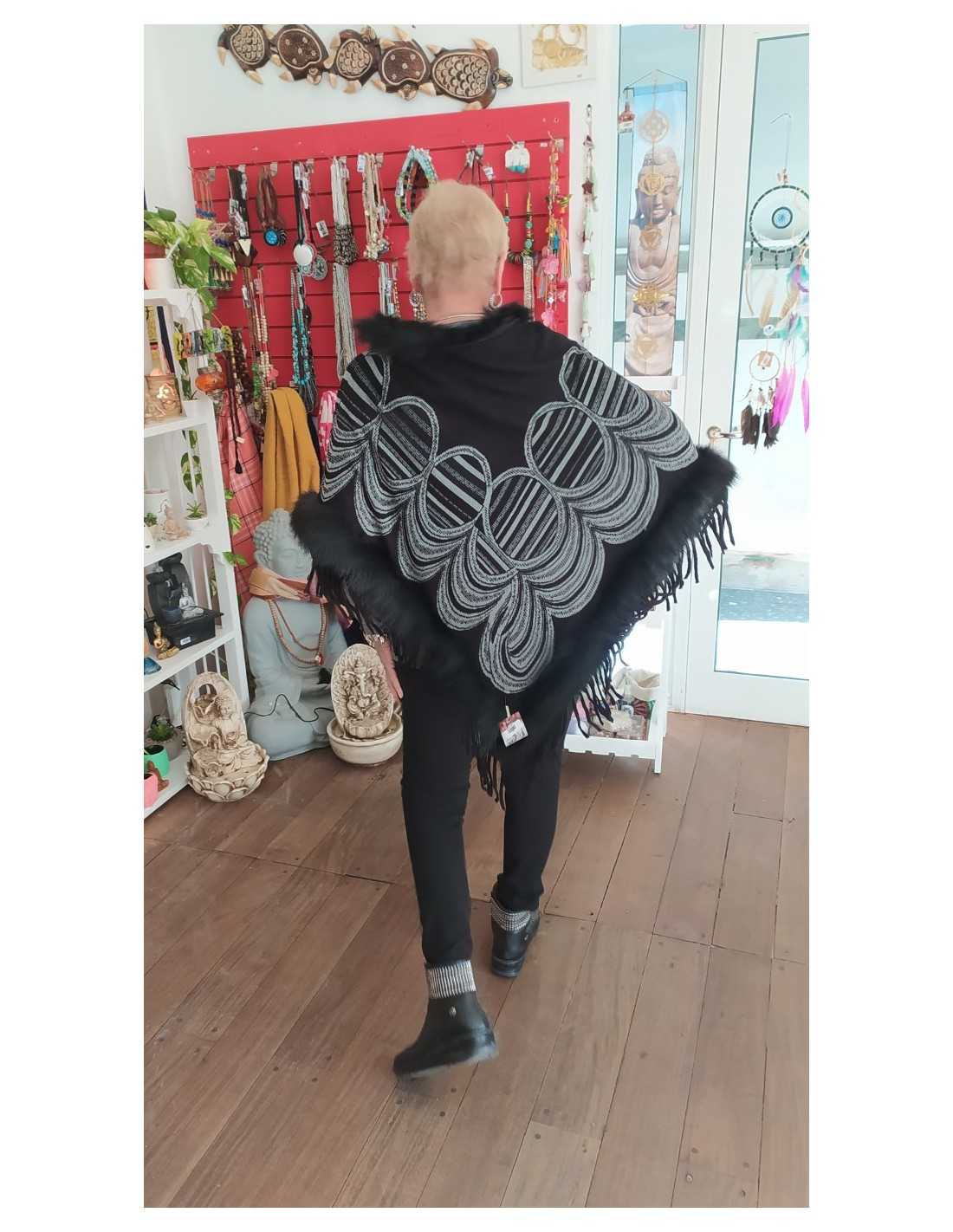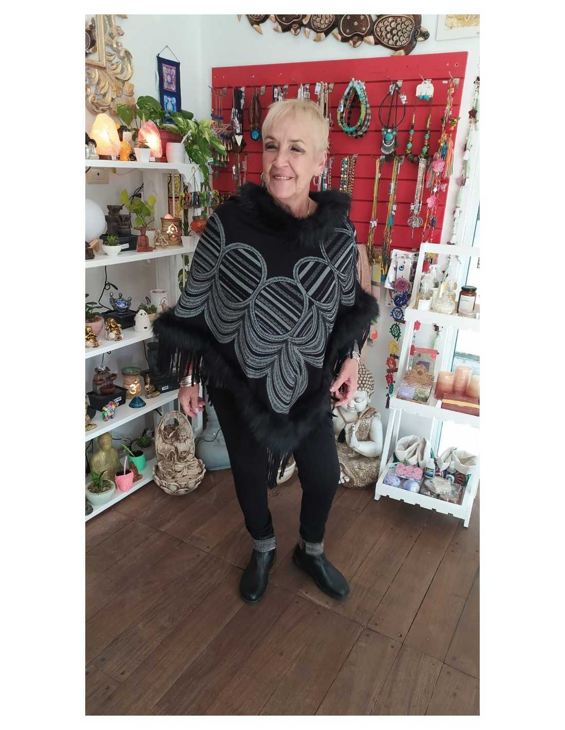 Elegancia y sofisticación en el Poncho Negro con Piel