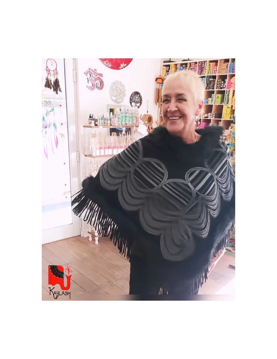 El Poncho Negro con Piel se posiciona como la prenda de abrigo definitiva para quienes buscan fusionar la sofisticación clásica con el espíritu libre del estilo boho chic en este 2026. En Kaylash, seleccionamos cada textil entendiendo que un abrigo debe ser mucho más que una protección contra el frío; por eso, nuestro Poncho Negro con Piel ha sido diseñado con una caída fluida y envolvente que se adapta rítmicamente a tu silueta, proporcionando una calidez excepcional sin sacrificar la elegancia. Ya sea que lo elijas para una cena formal, un evento al atardecer o para elevar un look urbano cotidiano, este poncho se convierte en la pieza central de tu guardarropa de invierno, envolviéndote en una suavidad premium que solo los materiales de alta calidad pueden ofrecer.