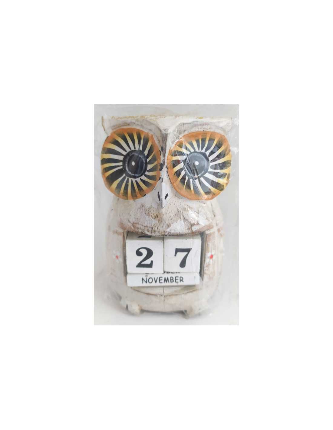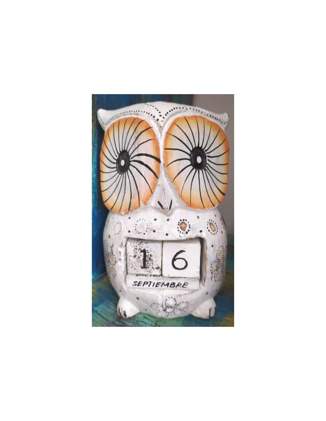 Búho calendario tallado en madera y pintado a mano. Ideal para decorar tu espacio u oficina. El búho calendario es una talla realizada a mano por artesanos indonesios. Sabías que tener un búho apuntando al ingreso del espacio por donde entran las personas es beneficioso? Te contamos, si lo apuntas al ingreso, ahuyenta las malas energías, es decir, aquellas personas que entren con mala vibra, el búho siempre los estará mirando para ahuyentarlos. Los calendarios vienen en forma de rectangular y cúbica, indicando los días del mes y meses del año.