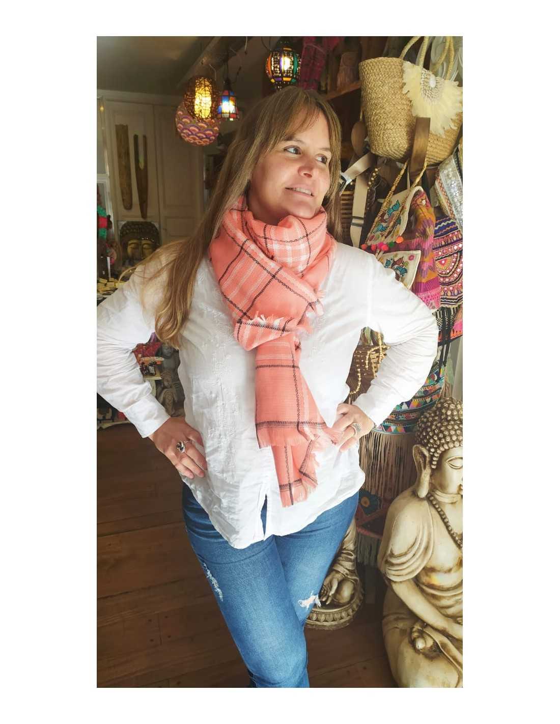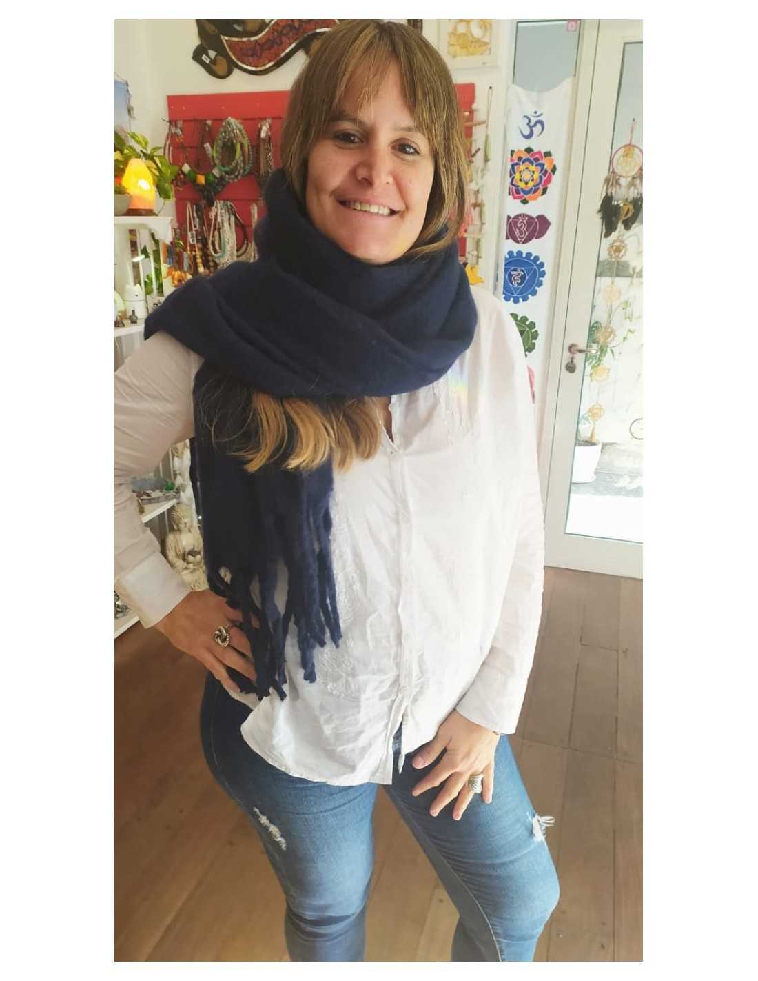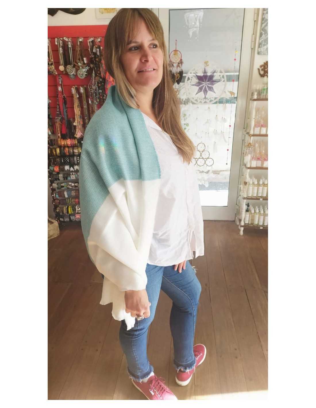 Versatilidad de Uso: Gracias a sus dimensiones, rítmicamente se puede usar como bufanda tradicional, como chal sobre los hombros o incluso como manta en momentos de meditación.