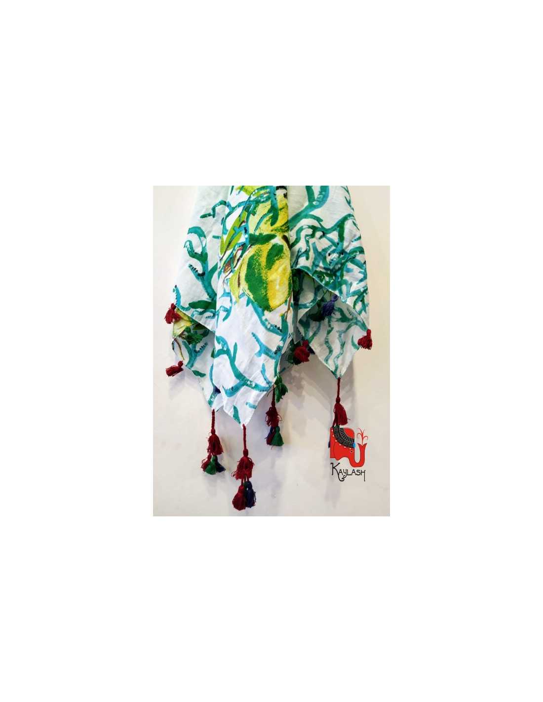 Pañuelos de algodón con pom pom y flecos