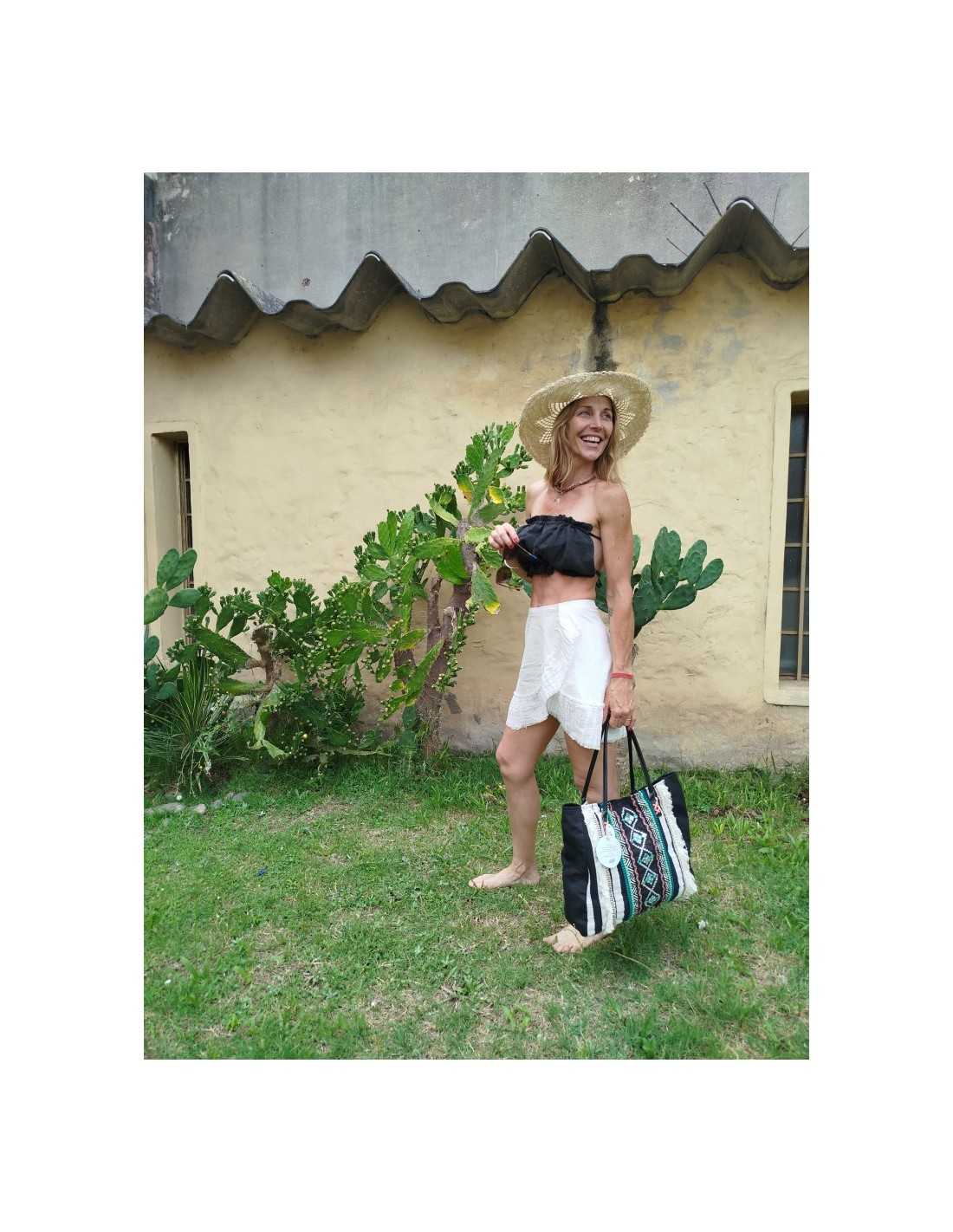 La Pollera Corta Gasa es extremadamente fácil de combinar, lo que la convierte en un básico versátil de tu guardarropa. Para un look "total boho", podés acompañarla con uno de nuestros tops de gasa a juego o una camisola blanca con detalles bordados. Si buscás algo más urbano, una remera básica de algodón y unas zapatillas blancas crearán un contraste moderno y relajado. No olvides completar tu outfit con accesorios de nuestra línea de cristales: un dije de cuarzo o amatista resaltará sobre la delicadeza de la gasa, aportando una vibración especial a tu estilo diario.