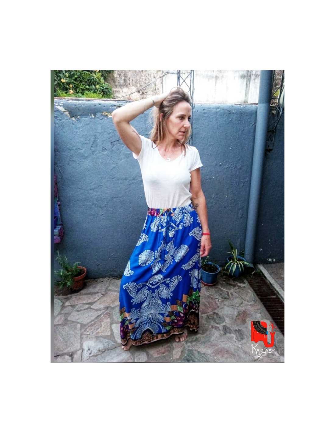 La Pollera Larga Toko se consagra como la pieza de indumentaria mística definitiva para quienes buscan fusionar rítmicamente la elegancia, la frescura y la comodidad en este 2026. En Kaylash, seleccionamos este modelo entendiendo que una falda no es solo una prenda, sino una expresión de libertad y conexión con nuestra propia esencia; por eso, nuestra Pollera Larga Toko destaca por su tejido de alta calidad que acaricia la piel y su icónica estampa de inspiración étnica. Al integrar esta pollera en tu guardarropas, estás eligiendo una prenda de caída fluida que se adapta rítmicamente a tu cuerpo, permitiendo que la libertad de movimiento y la expresión de tu personalidad sean los protagonistas de tu día a día, ya sea en un paseo al atardecer o en tus momentos de introspección y relax.