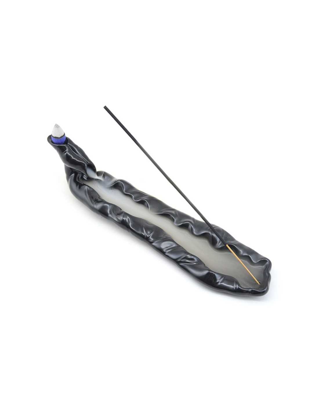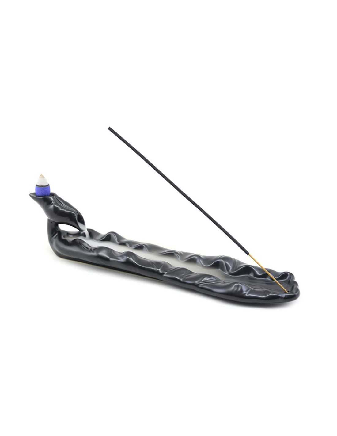 Utilizar el Porta Cono Cascada y Sahumerio con conos de reflujo crea un efecto visual que aquieta rítmicamente el sistema nervioso. A diferencia del humo ascendente común, el diseño de este porta-cono obliga al humo a bajar en forma de neblina blanca, imitando el curso de un río de montaña o una catarata mística.