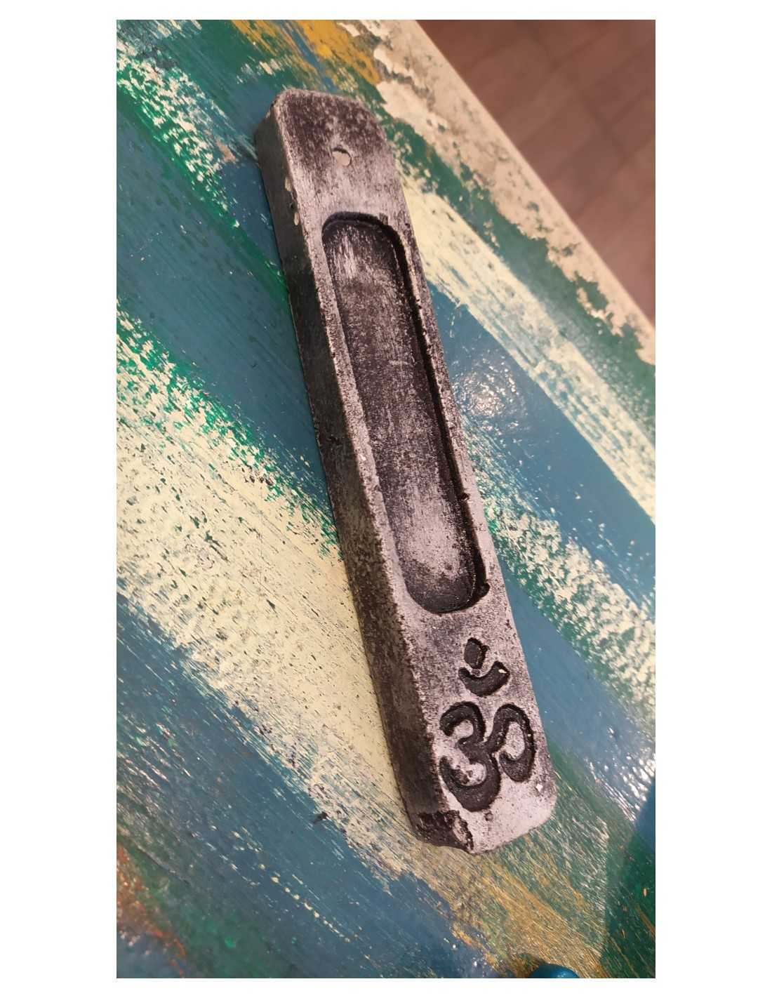La funcionalidad del Porta Sahumerio Om Lingote trasciende su belleza visual. Su formato "lingote" ha sido pensado para resolver uno de los problemas más comunes al encender varillas de incienso: la caída dispersa de las cenizas.