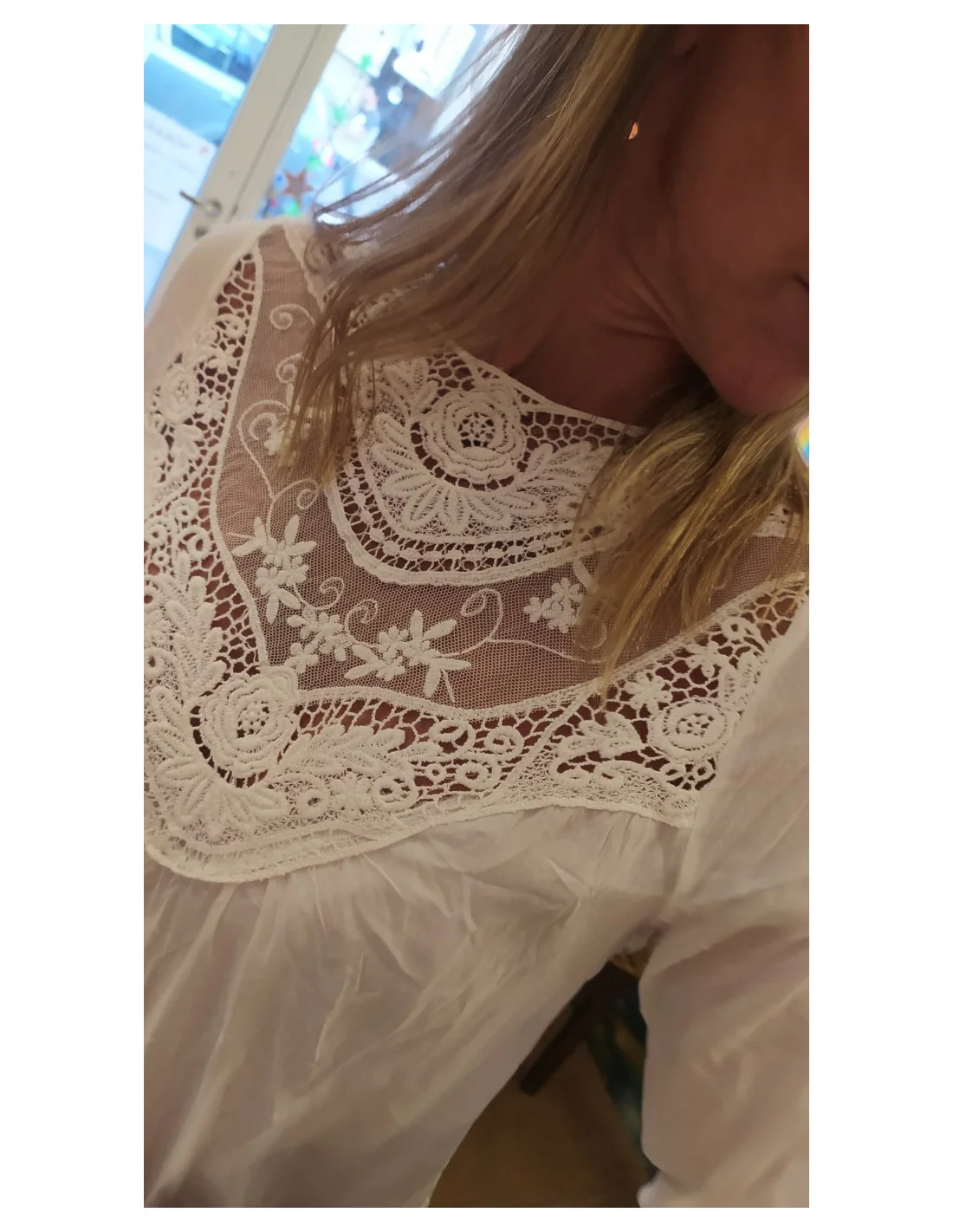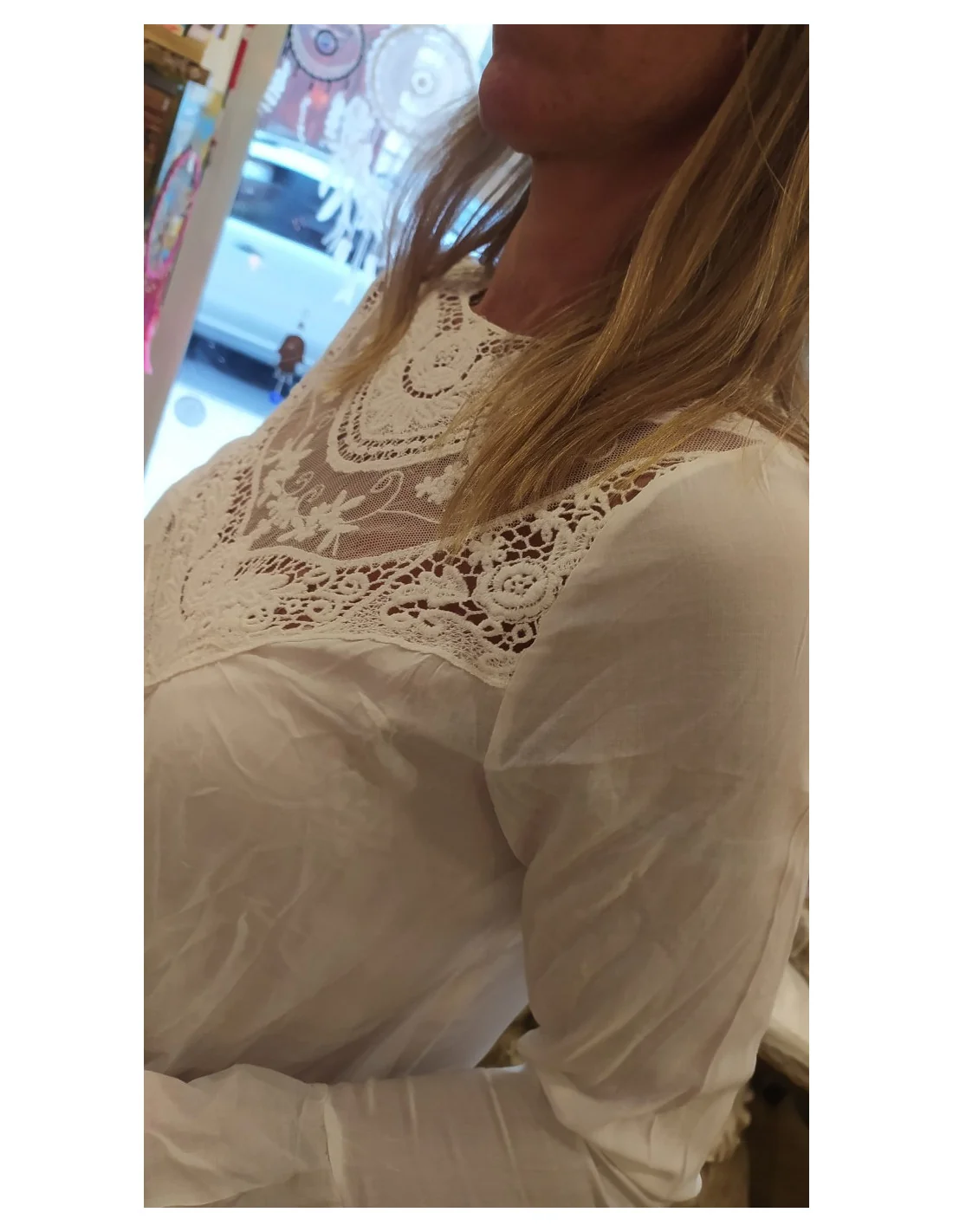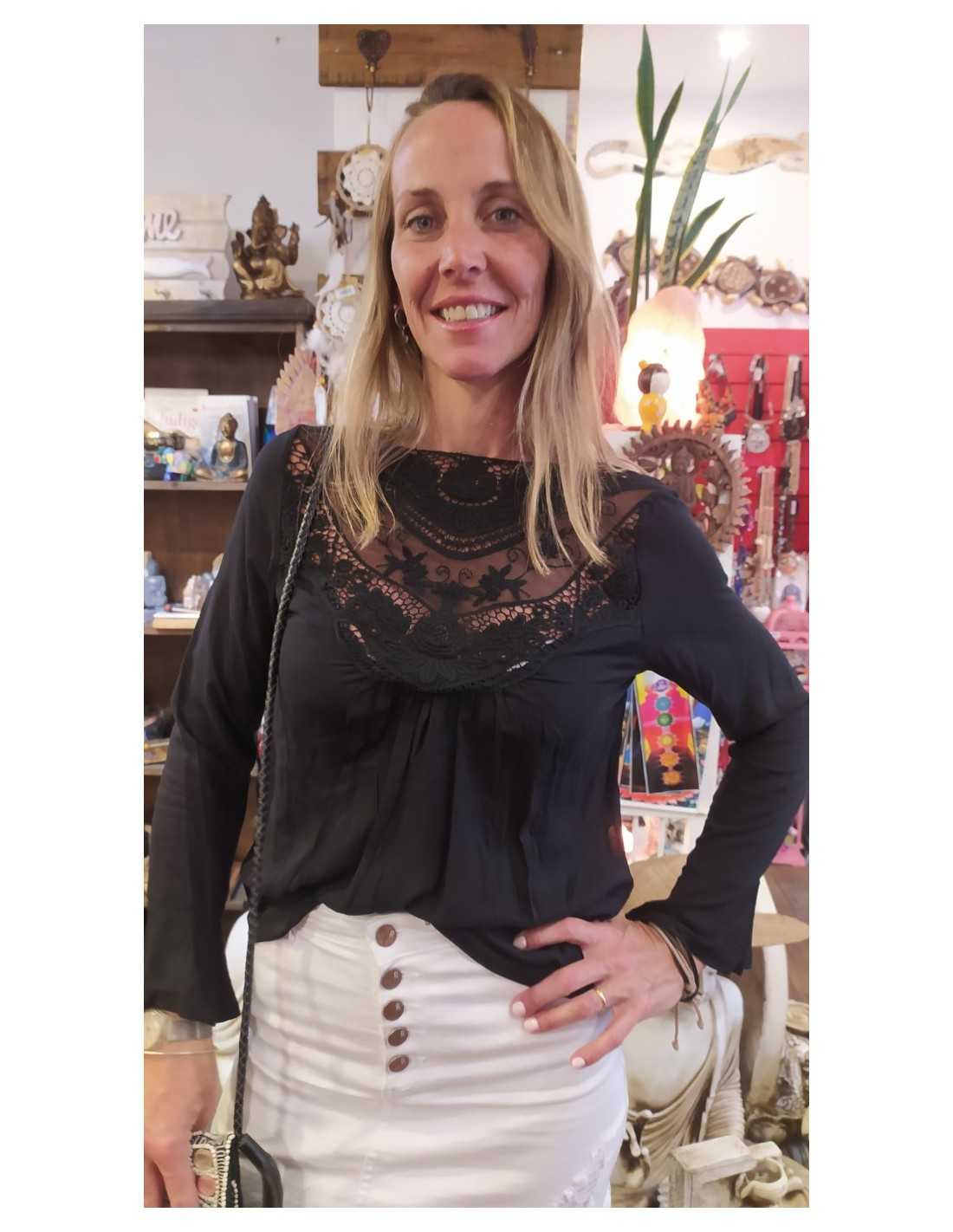 Outfit de Oficina: Si la llevás debajo de un blazer o una campera de cuero, el detalle bordado asoma para romper la monotonía de un conjunto formal, dándote un aire moderno y original.