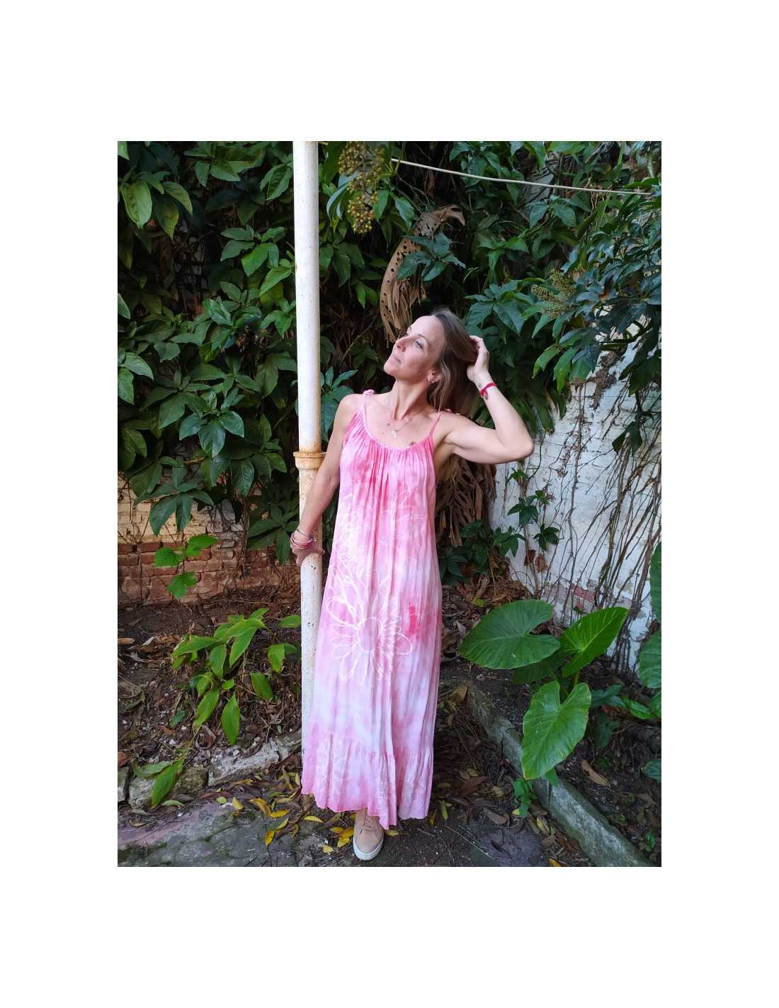 Lo que realmente hace destacar al Solero Batik sobre los vestidos industriales convencionales es el proceso de creación detrás de cada estampa. La técnica Batik es una forma de expresión milenaria que consiste en la aplicación de reservas para generar dibujos y degradados orgánicos sobre la tela. En este 2026, la tendencia de la "moda con alma" nos recuerda la importancia de rodearnos de elementos que tengan historia, y este vestido es el ejemplo perfecto de cómo lo rústico y lo moderno pueden fusionarse para devolvernos rítmicamente a nuestro centro creativo. Al vestir este solero, no solo llevás una prenda, sino una obra de arte textil que celebra la imperfección hermosa de lo hecho a mano.