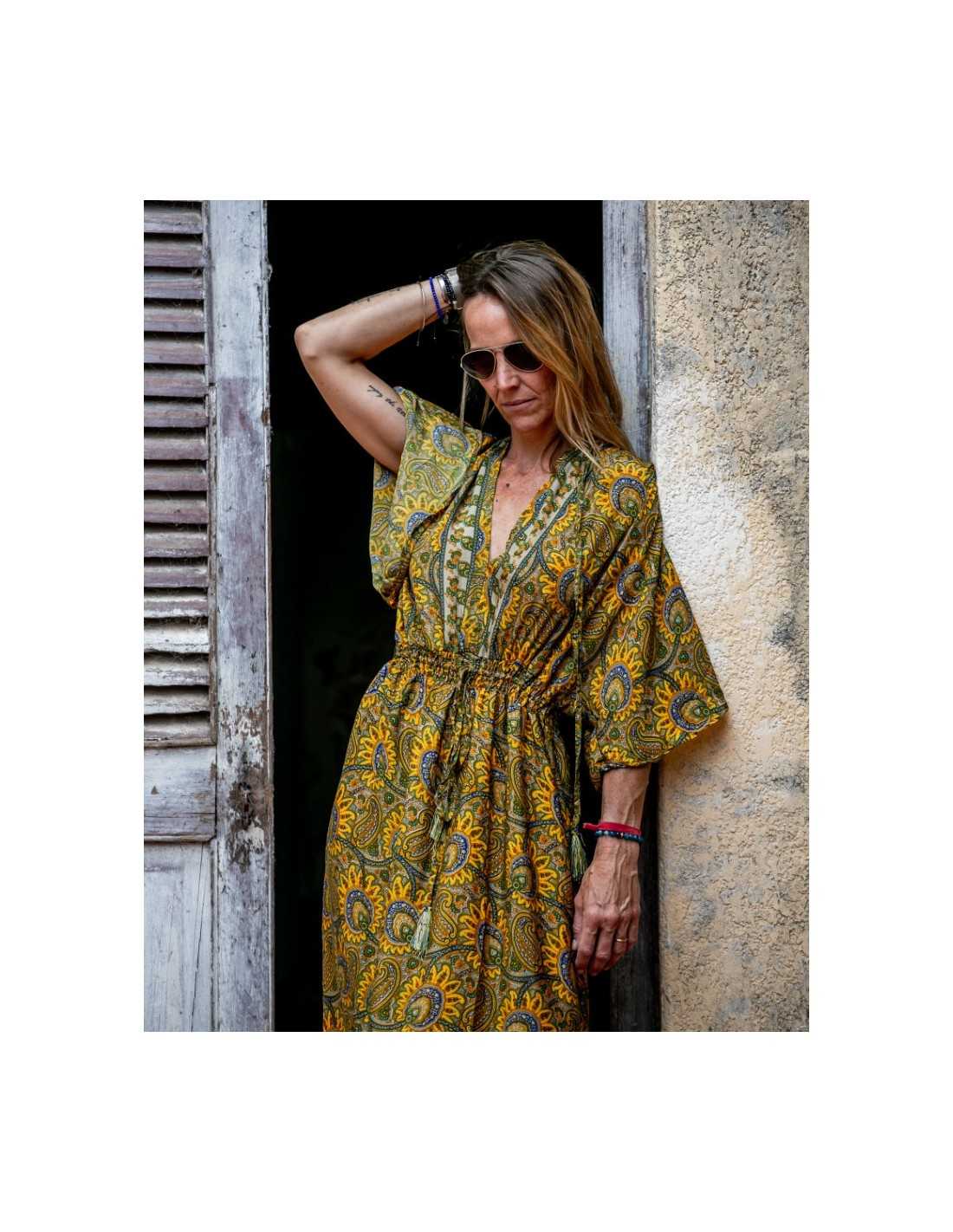 La versatilidad de un Vestido de seda India te permite jugar con diferentes accesorios para transformar tu outfit según la ocasión.