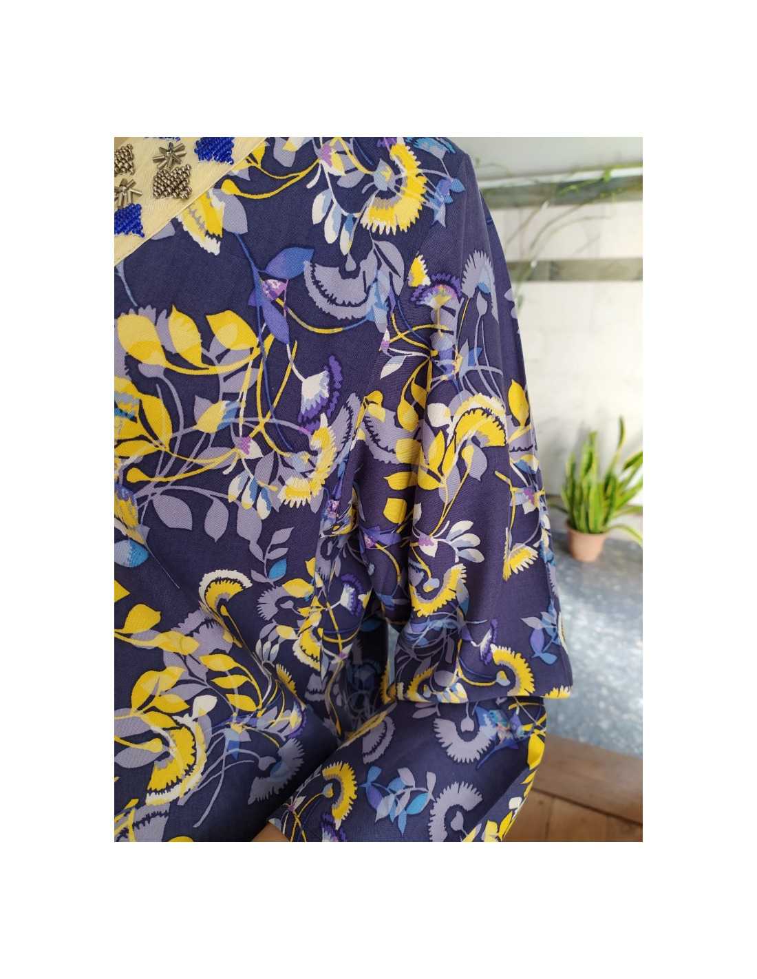 Lo que realmente hace destacar al Vestido Desigual Azul sobre las opciones convencionales es su arquitectura visual. Inspirado en las tendencias de diseño asimétrico y el concepto de "patchwork" sofisticado, cada panel del vestido ha sido dispuesto rítmicamente para crear un efecto de movimiento incluso cuando estás estática. Los detalles de los estampados no son aleatorios; son una curaduría de motivos botánicos y geométricos que se entrelazan para ofrecer una estética orgánica. En este 2026, la moda busca reconectarnos con lo artesanal, y este vestido es el ejemplo perfecto de cómo la tecnología textil puede emular rítmicamente la belleza de lo hecho a mano.